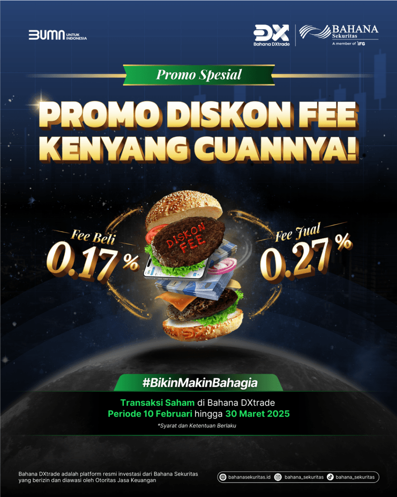 Bahana Dxtrade Bikin Makin Bahagia dengan promo spesial untuk transaksi saham! Nikmati fee transaksi super rendah dan rasakan cuan maksimal!